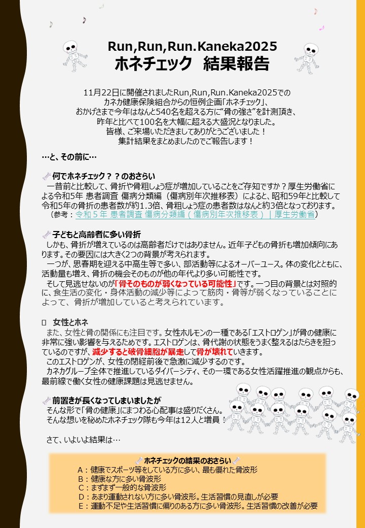 [Run,Run,Run.Kaneka 2025]ホネチェックの結果発表